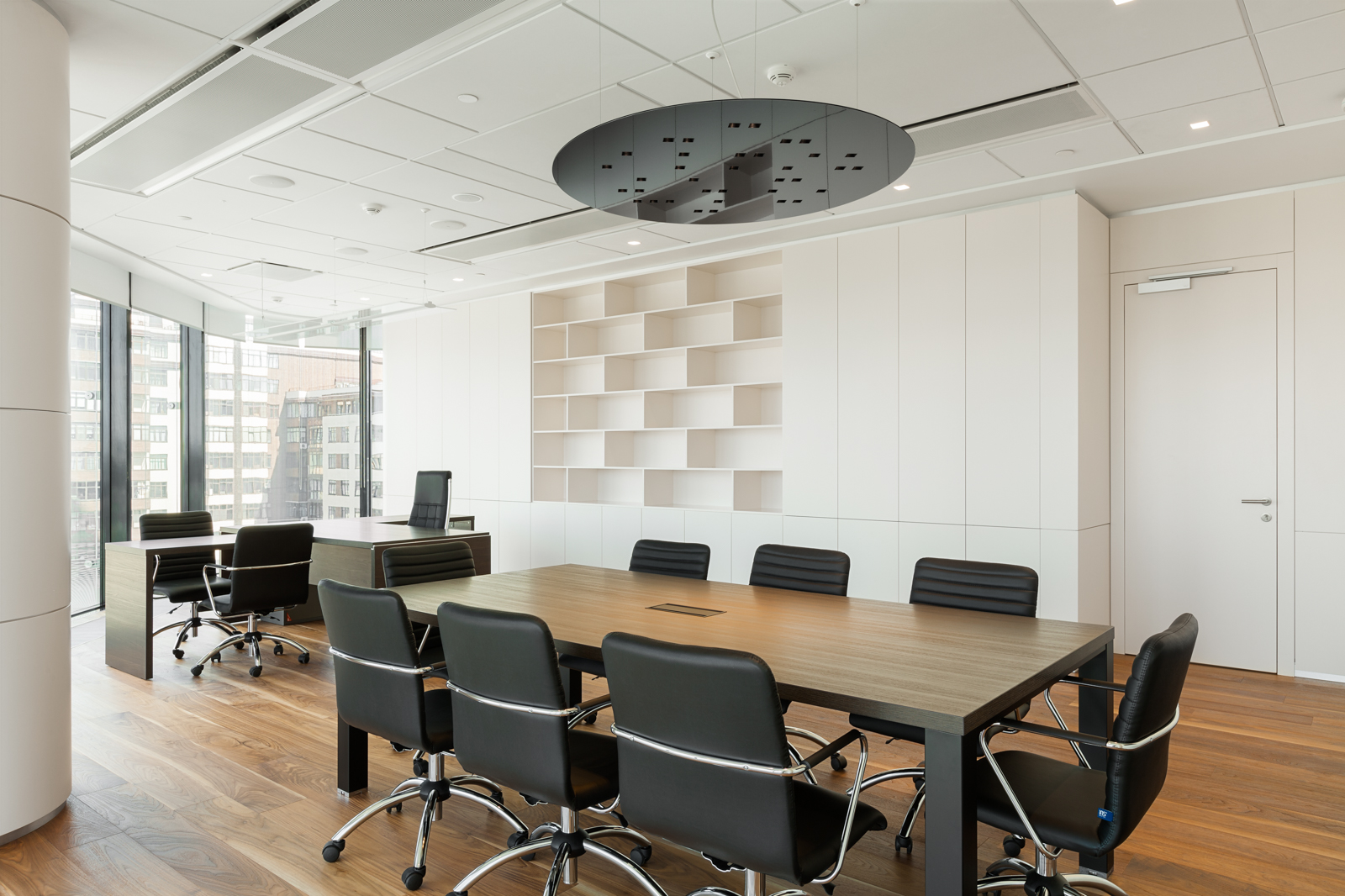 Для офиса одного из крупнейших банков России архитекторы из московского проектного бюро UNK project подобрали аскетичный и практичный дизайн интерьера с минимальным количеством декора.